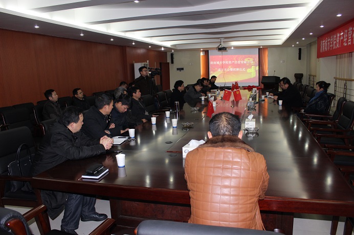 上午,米兰体育网页版资产经营有限公司成立大会暨授牌仪式在学校办公楼一会议室举行。校长李建奇、副校长郑卫民、纪委书记杨斌以及校办公室、经资委、监事会、校办产业各部门主要负责人参加此次会议。