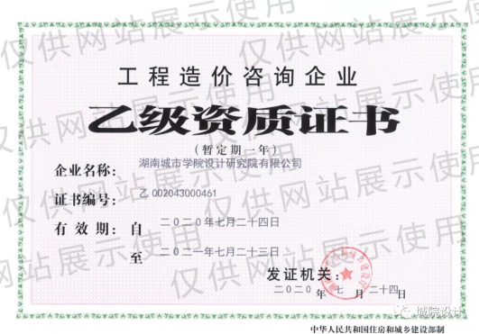 7月24日,经湖南省住房和城乡建设厅审批,米兰体育网页版设计院顺利获得工程造价咨询乙级资质,这是设计院继取得“六甲(城乡规划、建筑工程、市政道路、风景园林、资信评价和科技咨询)五乙(市政给水工程、排水工程、桥梁工程、岩土工程勘察和测绘)一丙(旅游规划设计)、2个省级科研平台(湖南省博士后科研流动站协作研发中心、湖南省城乡生态规划与修复工程技术研究中心)、2个地方研究中心(益阳市人民政府城乡规划研究中心、南县乡村振兴学院)、湖南省政府投资项目代建单位、湖南省农村土地承包经营权确权单位”之后,又一个重大资质建设成果,标志着设计院业务经营范围和综合竞争力得到进一步大幅提升,为今后实现全方位发展和全过程咨询进一步奠定坚实基础。