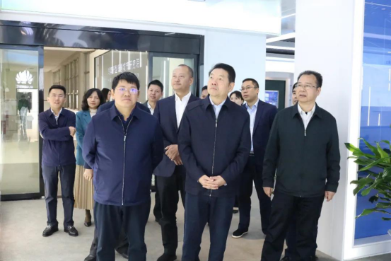 蒋作斌一行在研究院智慧城市展厅,观看“智慧益阳”近三年的建设情况,参观了解益阳新型智慧城市建设的一期建设成果。