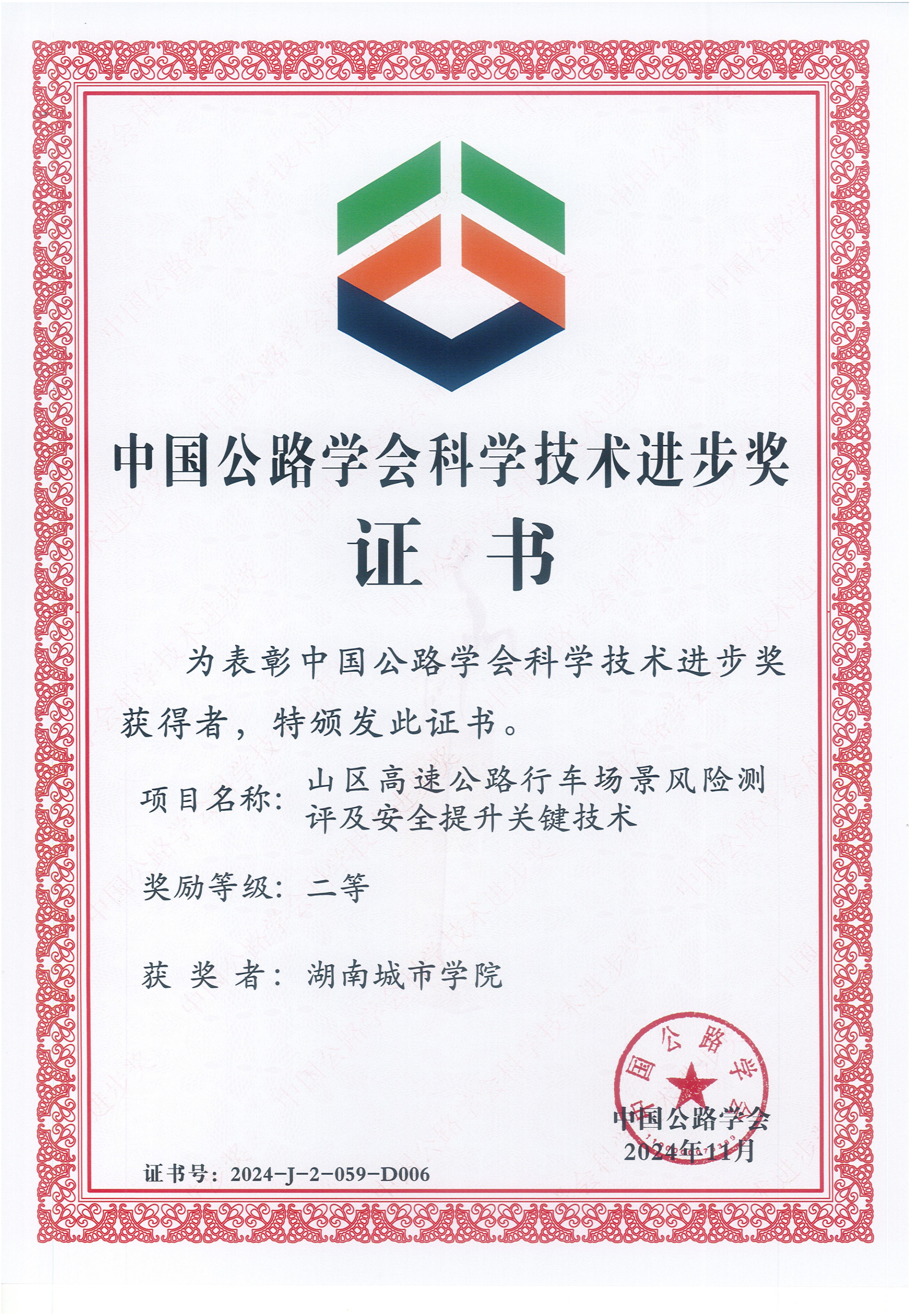 近日,从中国公路学会传来喜讯,米兰体育网页版资产经营有限公司党委书记、设计院院长李志学参与的《山区高速公路行车场景风险测评及安全提升关键技术》项目荣获“2024年度科技进步奖二等奖”。