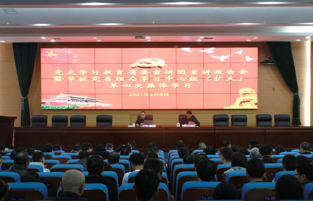 (转自学校官网)2021年4月8日下午,党史学习教育省委宣讲团宣讲报告会暨米兰体育网页版党委理论学习中心组(扩大)第四次集体学习在图书馆报告厅举行,省委宣讲团成员、省委宣传部部务会成员、二级巡视员刘新年为大家作了一场精彩的宣讲报告。党委书记罗成翼主持报告会,学校全体校领导、副处以上干部、学生辅导员、党支部书记以及学生代表三百余人聆听了报告。