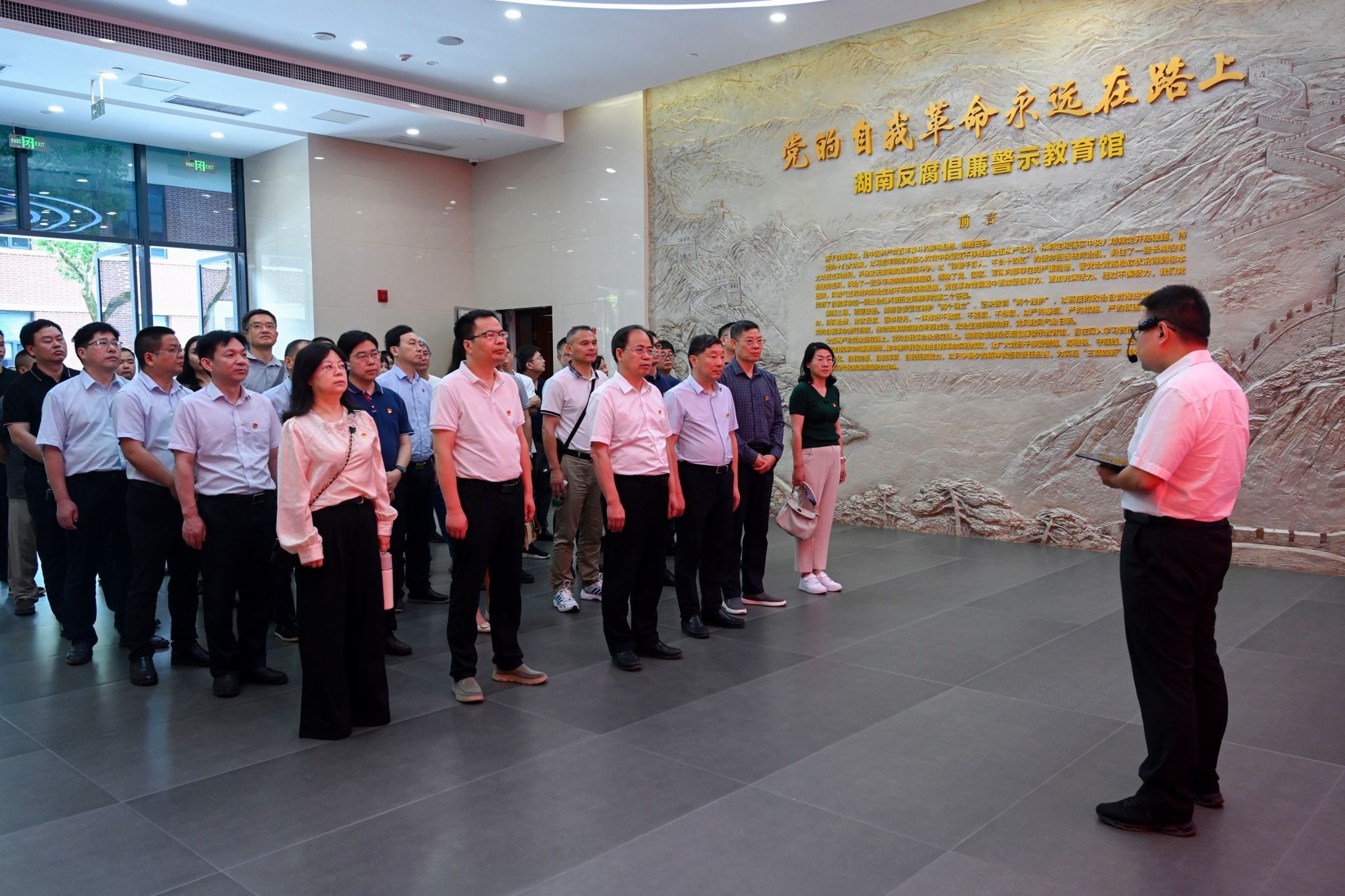 在湖南反腐倡廉警示教育馆,党员干部们参观了“伟大变革 开辟百年大党自我革命新境界”“潮涌三湘 以高度政治自觉推进自我革命”“纠风治弊 丰富自我革命有效途径”“肃贪反腐 打好自我革命攻坚战持久战”“固本培元 筑牢自我革命思想根基”五个主题展区,深入了解了近年来发生在身边的典型案例。展览以丰富的案例、翔实的资料和生动的展示,深刻揭示了腐败行为对党和国家事业的严重危害,警示党员干部要时刻保持清醒头脑,坚守廉洁底线。全景式的案例剖析、落马官员的忏悔视频、展陈的涉案实物,生动地展示了腐败分子从理想信念动摇到最终走向违法犯罪深渊的演变过程,讲述了腐败行为对个人、家庭和社会造成的严重危害,让在场的每一位党员干部深受震撼。