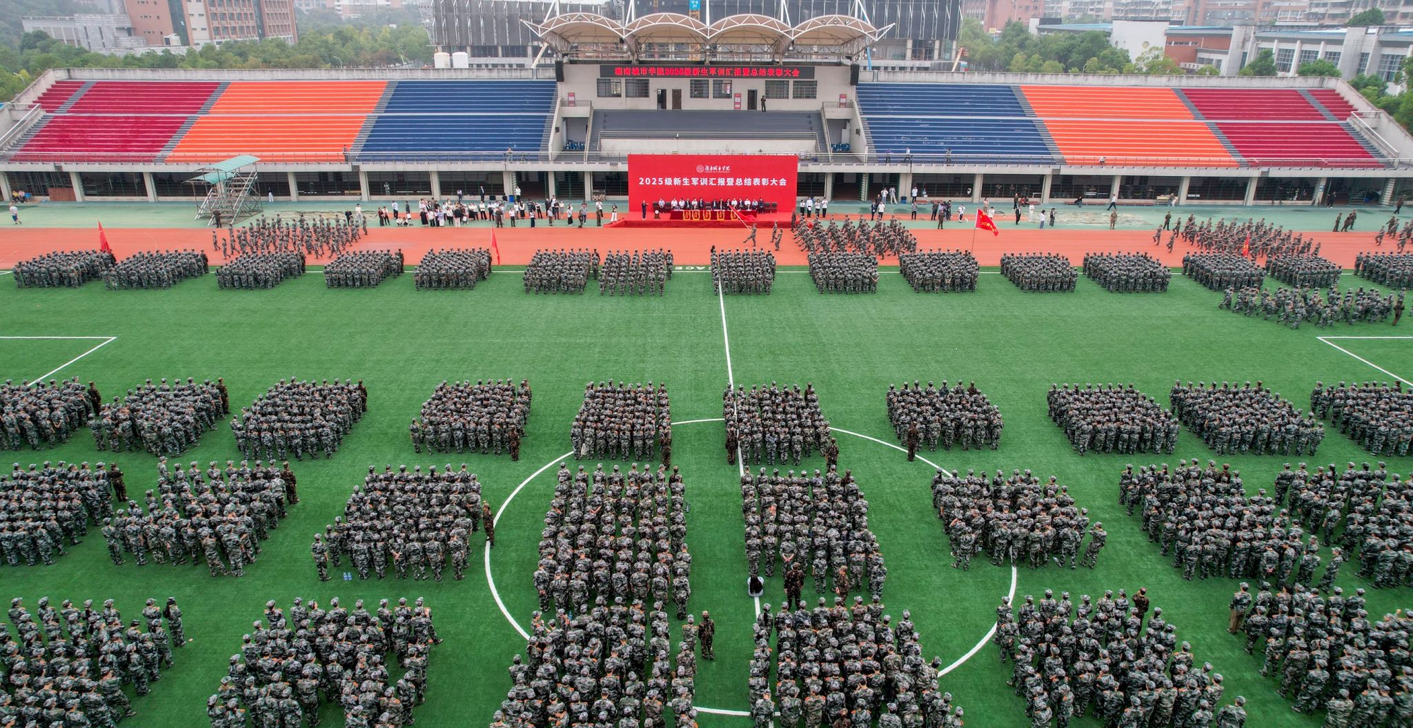 本网讯 9月30日上午8时,米兰体育网页版2025级新生军训汇报暨总结表彰大会在学校东田径场举行。全场新生身着全套迷彩,以最昂扬的精神面貌迎接来自各方的检验。全体在家校领导出席大会。校党委书记何振宣布军训成果汇报表演正式开始,副校长雷存喜主持大会。