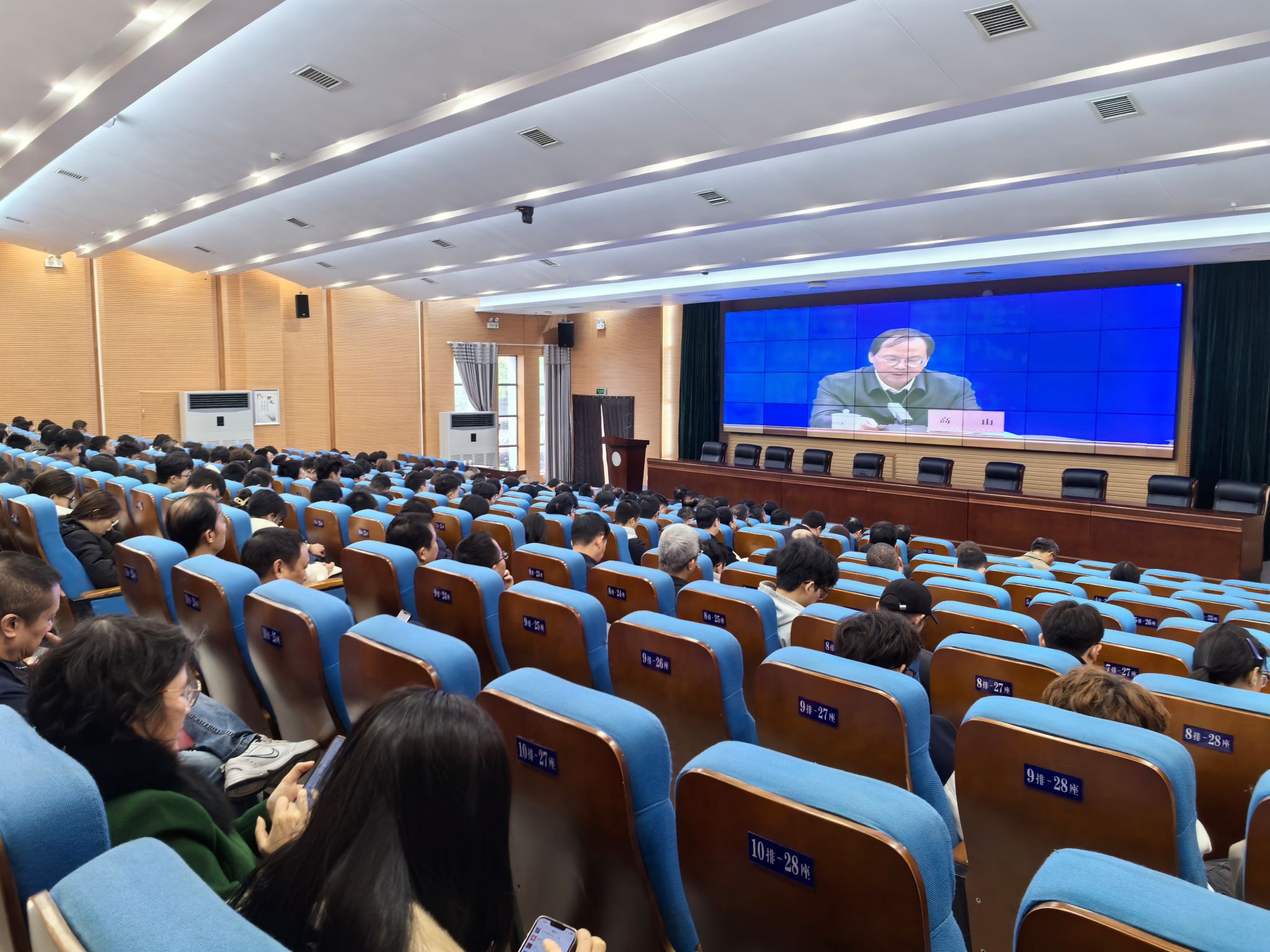 我校党委书记何振、副校长雷存喜赴现场参加会议,其他在家校领导与各机关职能处室负责人、二级学院党政主要负责人和分管负责人、双创专干以及其他师生代表300余人在学校图书馆报告厅通过线上形式参加会议。