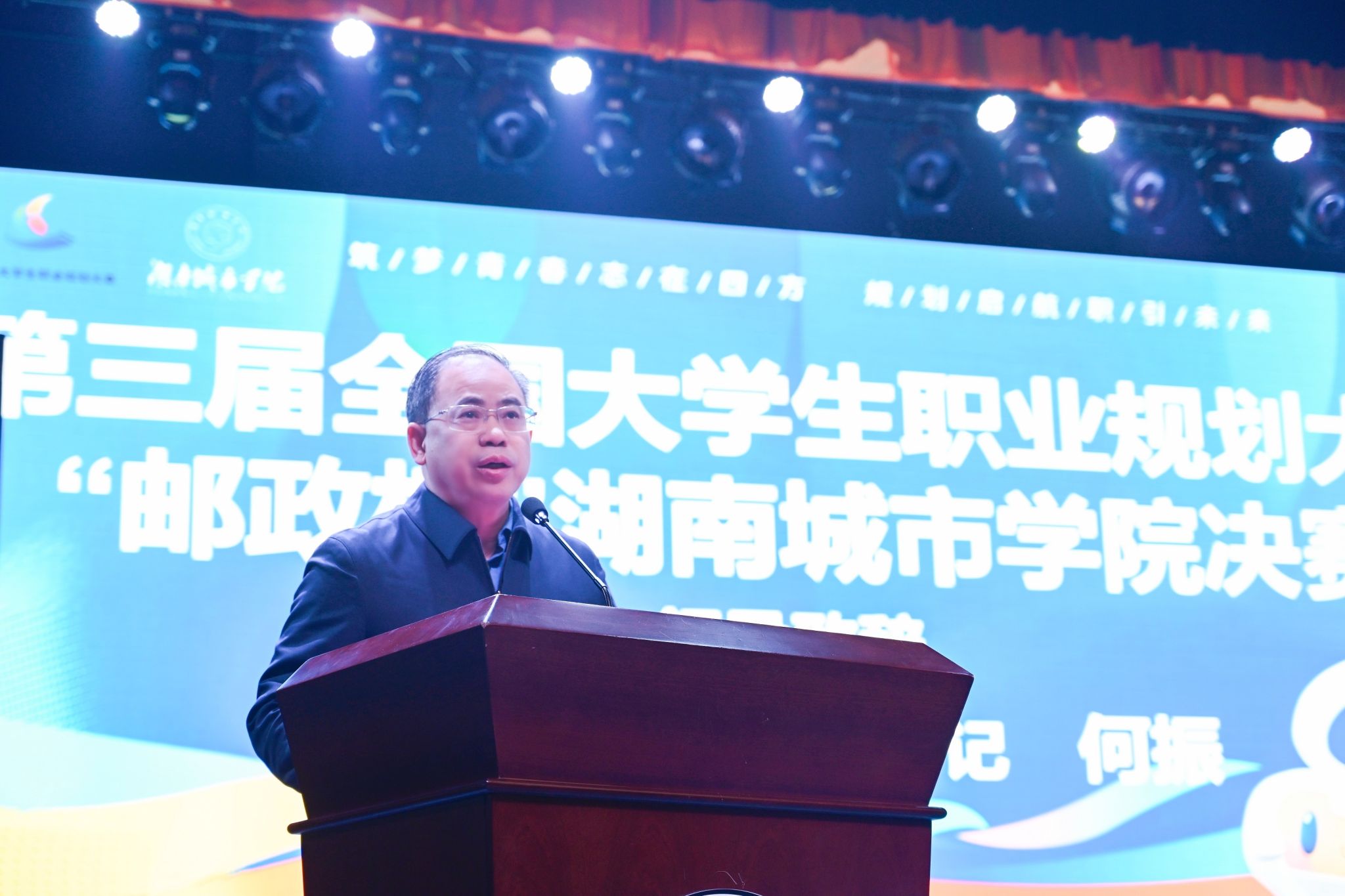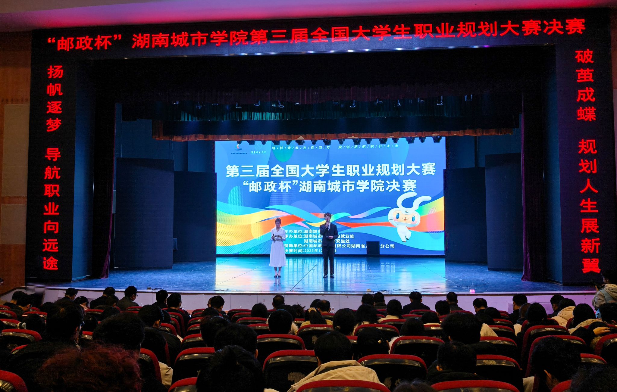 本网讯(通讯员 郭 静 郭姝君)12月12日下午,“邮政杯”米兰体育网页版第三届大学生职业规划大赛决赛在音乐厅举行。校党委书记何振、副校长孙倩,中国邮政集团有限公司湖南省益阳市分公司副总经理杨旭东出席决赛。