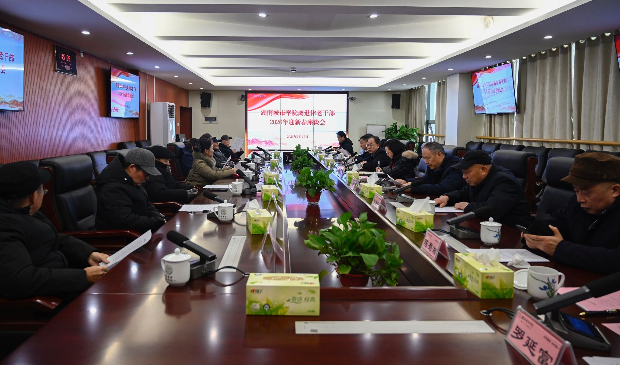 本网讯(通讯员 张艳霞 陈佩霞)1月27日下午,我校离退休老干部迎新春座谈会在办公楼一会议室召开。校党委书记何振、校长陈瑜、副校长谭献良与离退休老干部代表二十余人欢聚一堂,喜迎新春佳节,共话学校发展。会议由谭献良主持。
