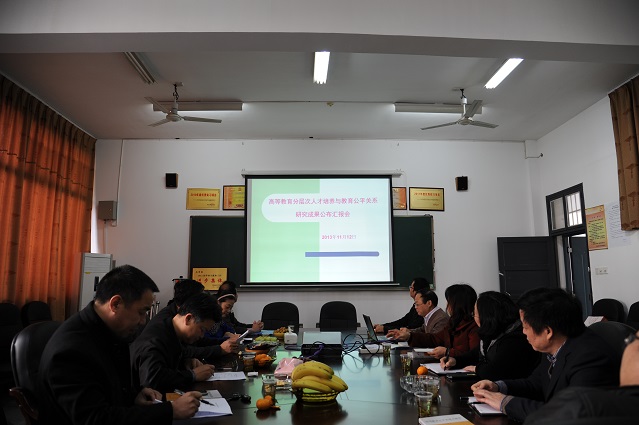 (本网讯)1114日下午,由文学院刘中顼教授主持的全国教育科学规划课题“高等教育分层次人才培养与教育公平关系研究”成果公布汇报会在校本部二教学楼307室举行。副校长严曙光、汤放华,发展规划处及文学院相关负责人、课题组成员出席汇报会。