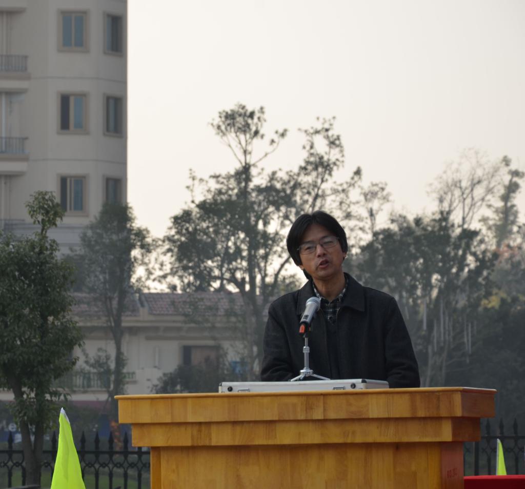 仪式由美艺院副院长陈升起主持,校长李建华代表学校致辞,他充分肯定了美艺楼不仅设计美观、大方,极具现代感,而且充分践行生态文明与两型社会建设理念。他肯定了美艺院近年来的办学成就,并热情鼓励美艺院的莘莘学子以艺悟道,敢于担当;同时希望美艺院在这个崭新的平台上策马扬鞭,奋力前行!