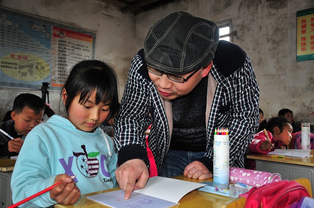 陈慧如是团云小学三年级学生,父母在长沙打工,由爷爷奶奶照顾。她最大的心愿就是能够画一张全家福。在知道她的情况后,辅导员段知力老师来到她身边,主动教她画画。尽管是第一次接触画笔,在段知力的帮助下,陈慧如还是亲手完成了一幅“全家福”。“谢谢老师,我要把这幅画挂在房子里,我要把它寄给爸爸妈妈看。”陈慧如兴奋的告诉段老师。