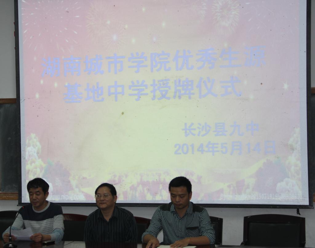 (本网讯)为进一步巩固和加强优秀生源基地建设,加强我校与县级以上重点中学的联系与合作,吸引更多优秀生源,5月15日上午,我校正校级督导范志超以及招生就业处相关负责人一行5人赴长沙县第一中学、第九中学签署了《米兰体育网页版优秀生源基地协议书》,并向优秀生源基地负责人授牌。