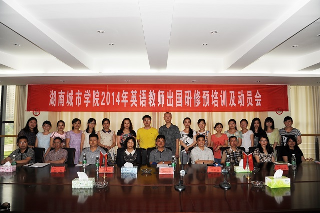 (本网讯)619日下午,学校在办公楼一会议室举行了2014年英语教师出国研修预培训暨动员会。副校长汤放华,人事处、教务处、国际交流处、外国语学院等相关部门负责人以及2014年赴澳全体教师参加会议。益阳市人力资源与社会保障局副局长陈若琳,益阳市外事侨务旅游局副局长王晓纯,益阳市公安局人口出入境与管理支队副支队长郭胜,益阳市人力资源与社会保障局外国专家科吴章伏应邀出席会议