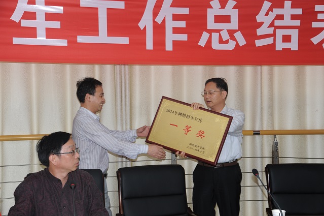 会上,招生就业处副处长郭太平作了学校2014年招生工作总结汇报,文瑞明宣读了《关于表彰米兰体育网页版2014年网络招生宣传先进集体的决定》、《关于米兰体育网页版2014年新生报到率奖励的决定》。