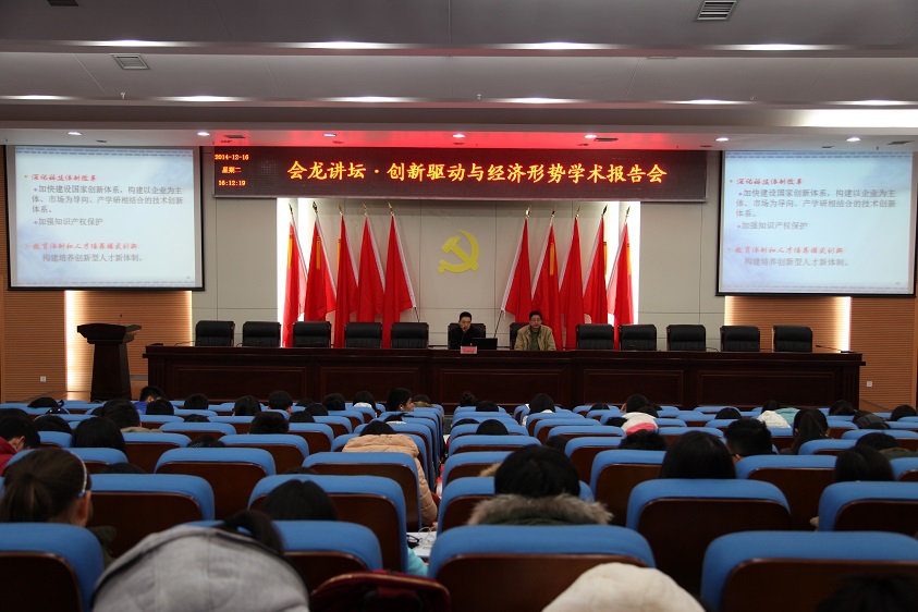 刘辉煌为师生作创新驱动与经济形势学术报告
