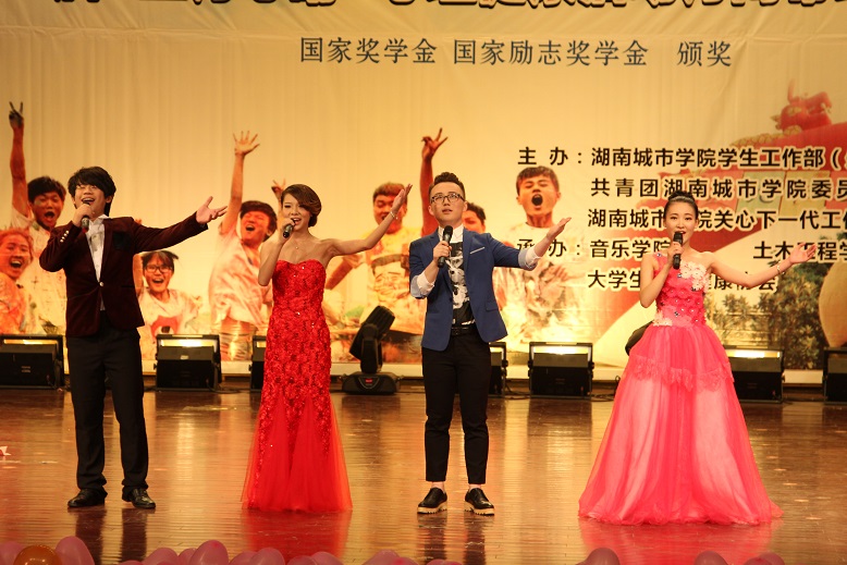 (本网讯) 531晚,第十一届“五月心晴”心理健康活动月活动闭幕式暨2014年度国家奖学金颁奖典礼在学校音乐厅隆重举行,为期一个月的“五月心晴”心理健康活动月活动至此圆满结束。  学校党委委员、副校长 汤放华 教授应邀出席晚会并给获得2014年度国家奖学金优秀学生颁奖,学校关心下一代工作委员会、党委宣传部、学生工作部、团委、招生就业处及各二级学院领导观看演出并颁奖,大学生心理健康教育中心全体教师、二级学院辅导员及大学生心理健康协会干部和会员参加闭幕式。