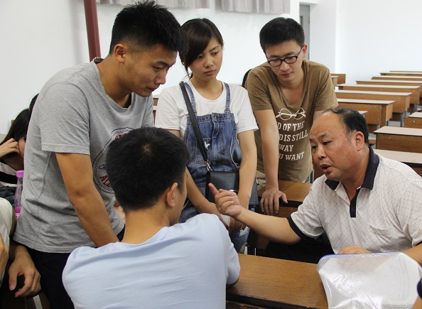 ,美术与艺术设计学院2015届毕业设计(创作)公开答辩会在第一教学楼和美艺楼举行。与往届答辩不同的是,除了专业老师以外,答辩现场还多了几位嘉宾评委。他们是美术与艺术设计学院三家就业基地三星·九艺装饰公司、三星品高集团、益阳市装饰协会的6位高管。