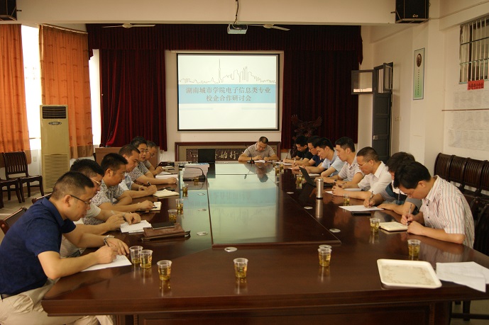 (本网讯)7月2日上午,米兰体育网页版电子信息类专业建设研讨会暨电子信息类专业校企合作研讨会在电信楼三楼会议室举行。湖南科瑞特科技股份有限公司总经理、湖南科瑞迪教育发展有限公司执行董事张宏立,学校教务处、通信与电子工程学院院相关负责人以及部分教研室主任、教学办主任、办公室主任参加了会议。研讨会主要就电子信息类专业的专业建设、校企合作深入开展及实验班的开办、就业质量良性循环的形成、社会服务能力的提升等内容进行了研讨和交流。