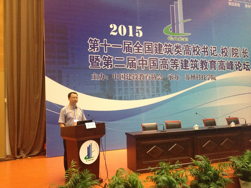 (本网讯)10月26日,校长李建奇应邀出席了在苏州举行的第十一届全国建筑类高校书记、校(院)长暨第二届中国高等建筑教育高峰论坛,并做了题为《地方本科院校土建类应用型人才工程执业能力培养的改革》的主题发言。