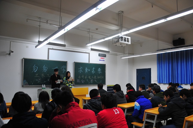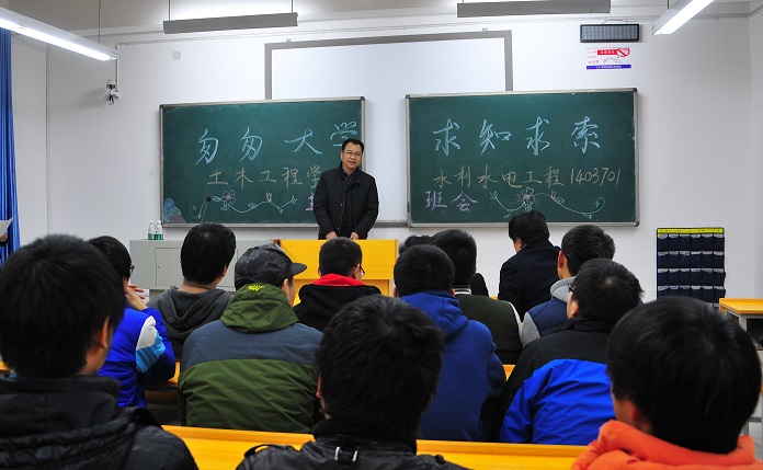 (本网讯)“我希望大家能够把自己的专业学习与未来的发展规划紧密结合起来,做到有的放矢,不要虚度光阴……” 1215晚,在土木工程学院水利水电工程专业1403701班的“匆匆大学 求知求索”主题班会上,一位特别嘉宾的发言赢得了同学们热烈的掌声,他就是校长李建奇教授。为了进一步了解联系班级学生的思想状态,李建奇专程参加这次主题班会活动。