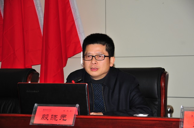 (本网讯) 1218下午,省委宣讲团“党的十八届五中全会精神”宣讲报告会在逸夫图书馆报告厅举行,省委宣讲团成员、省委宣传部理论处处长,湖南省青年社科委副主任,殷晓元博士应邀主讲,这也是我校德智讲堂第十八讲。在家的校领导、全校副科级以上干部、学生辅导员、学生党员代表、马克思主义学院全体教师参加。学校党委书记李建华主持报告会