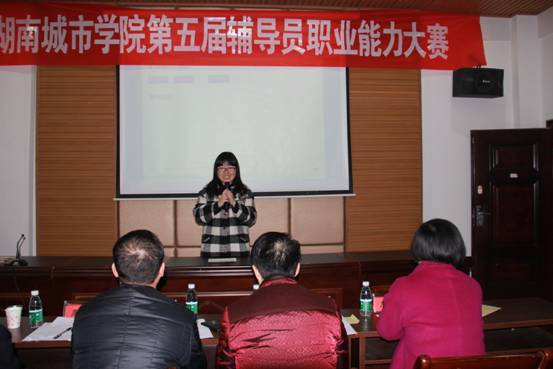 (本网讯)为了全面推动教育部关于《高等学校辅导员职业能力标准(暂行)》和《普通高等学校辅导员培训规划(2013-2017年)》文件精神的贯彻实施,引领我校辅导员职业化、专业化发展,提高辅导员的职业能力和服务水平,促进各辅导员间相互交流与学习,选拔优秀选手参加全省辅导员职业能力大赛,根据省教育厅《关于举办湖南省第五届高校辅导员职业能力大赛的通知》(湘教通〔2016〕21号)要求,我校于3月11-13日举行了第五届辅导员职业能力大赛。