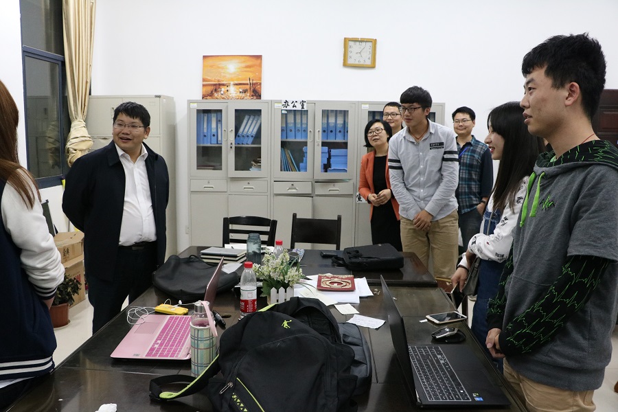 罗成翼与学生干部交谈
