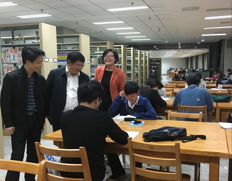 罗成翼看望正在图书馆自习的学生