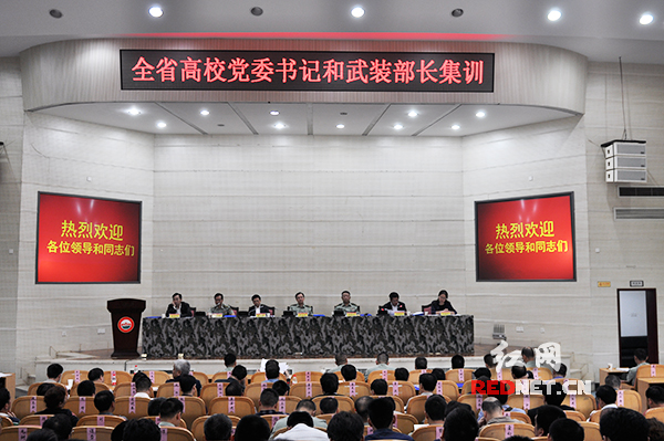 (本网讯)5月24日,湖南高校党委书记和武装部长集训在湖南农业大学举行,会议主要总结梳理近年来高校武装工作做法,交流建设经验,规范建设标准,研究部署任务,推动高校武装工作有效落实。全省高校党委书记和武装部长、各市州军分区(警备区)、预备役部队参谋长及省军区和省教育厅相关领导等200余人参加,省军区领导黄跃进、郭辑山出席。