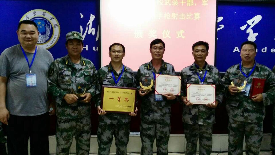 我校代表队由武装部副部长蔡英杰领队,肖跃华、周新邵、王加新、刘红星、江卫兵五名队员组成。比赛中,队员们以过硬的本领和扎实的基本功在众多选手中脱颖而出,以总分第二的成绩荣获团体一等奖(湖南警察学院总分第一),肖跃华、王加新、刘红星都获得个人优秀射手。省教育厅副厅长应若平、省军区副参谋长胡代松出席了颁奖仪式。