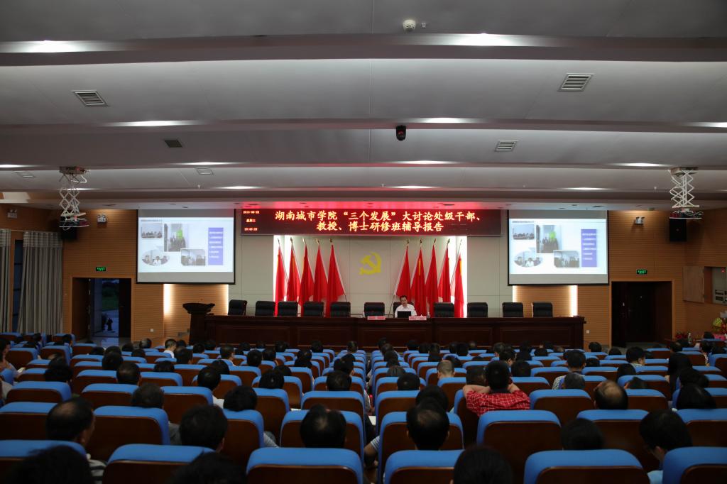 (本网讯)6月22日晚,学校“三个发展”专题研修辅导报告会在图书馆报告厅召开。党委书记罗成翼和校长李建奇分别就荷兰和德国应用技术大学的发展状况进行了介绍和解读。全体校领导,教授、博士、副处级以上干部,教务处、科学研究与学科建设处工作人员参加了报告会。会议由副校长汤放华主持。