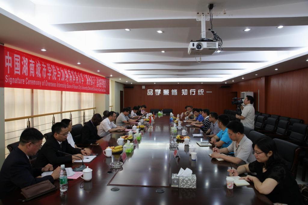 夸波奥-奥波库阿杰曼介绍了孔子学院目前的建设情况,我校文学院院长袁志成介绍了海外实习基地建设情况与要求。