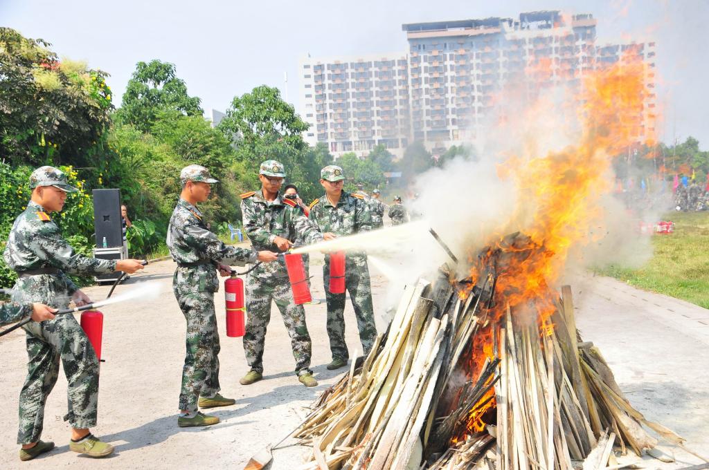 疏散演习结束后,湖南省银城消防职业培训学校教官对疏散演练进行了点评,讲解了灭火流程和各种消防器材的使用方法,并组织部分学生进行了灭火器灭火演练。