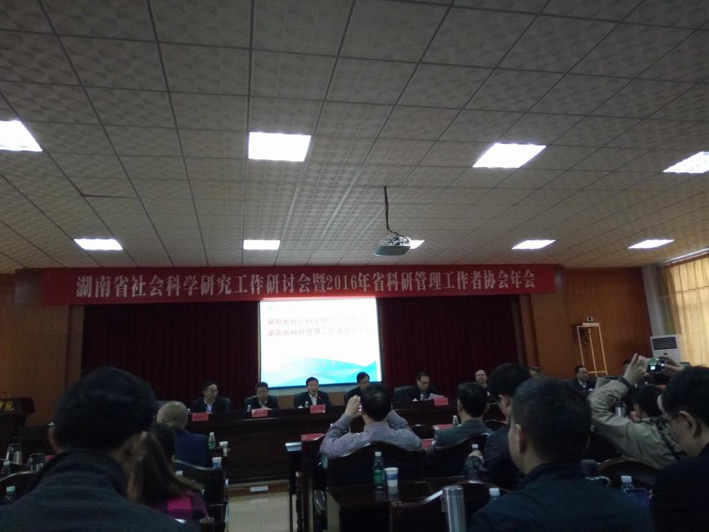 (本网讯)11月2-3日,湖南省社会科学研究工作研讨会暨湖南省科研管理工作者协会年会在湖南科技学院举行。我校副校长何振应邀出席会议。来自省社科联以及全省各普通高校从事社科管理工作的100余名代表参会。