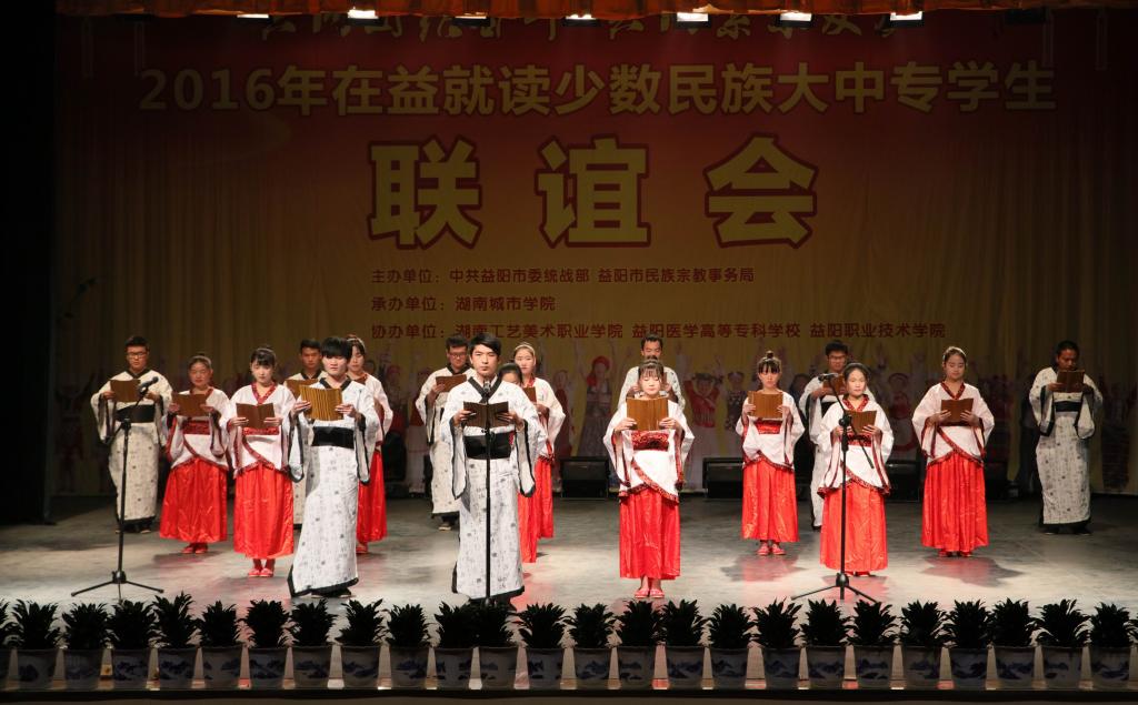 (本网讯)12月18日下午,2016年在益就读少数民族大中专学生联谊会在我校音乐厅隆重举行。联谊会由市委统战部、市民族宗教事务局主办,米兰体育网页版承办,湖南工艺美术职业学院、益阳医学高等专科学校、益阳职业技术学院协办,主题为“共同团结奋斗 共同繁荣发展”。益阳市委宣传部、市委统战部、市民族宗教事务局、市公安局、市教育局、市文体广新局以及四所高校相关负责人出席联谊会。