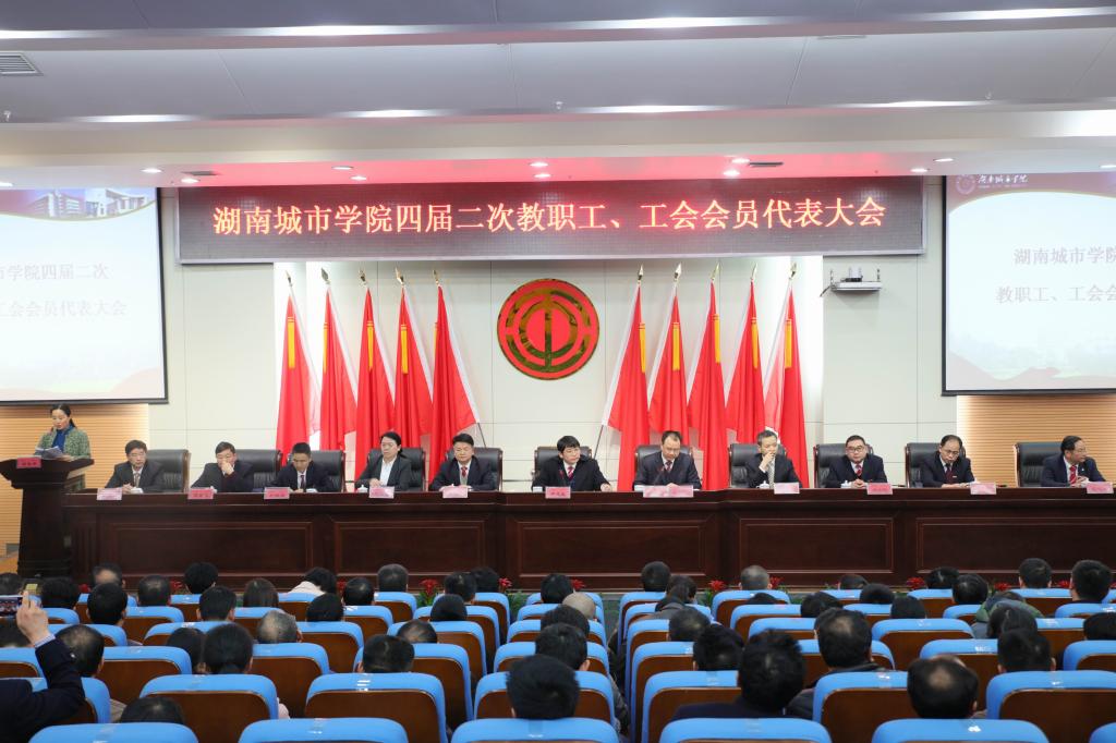(本网讯)3月31日下午4点30分,学校第四届二次教职工、工会会员代表大会闭幕式在图书馆报告厅举行。会议审议通过了校长工作、工会工作、财务工作、工会经审工作等报告及《米兰体育网页版岗位绩效工资管理办法》,选举了工会委员会、经审委员会委员。党委书记罗成翼在会上发表重要讲话。会议由校长李建奇主持。