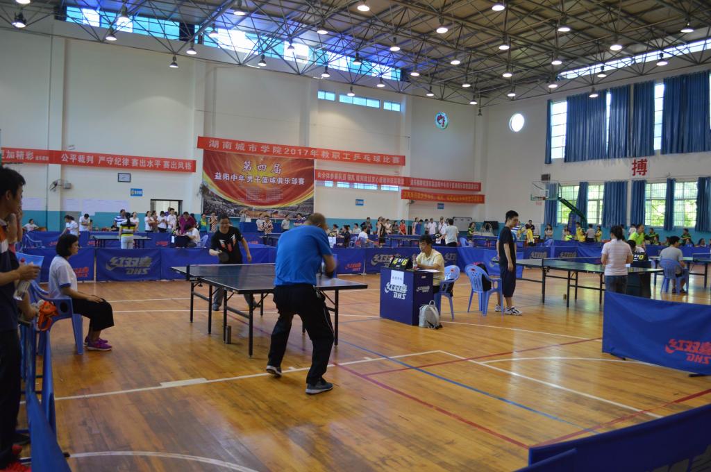 本次比赛分男单、女单、混双、男双、女双5个项目进行混合团体赛,各分工会党政领导高度重视,亲自带队参赛,各参赛队精心排阵,赛场上努力拼搏,啦啦队为各自队伍加油助威,加油声、欢呼声此起彼伏。乒乓球赛的成功举办,既活跃了广大教职员工的业余文体生活,也增进了大家的交流和凝聚力,同时也展示了我校教职工积极向上、同心协力、努力拼搏的精神风貌。(周敏)