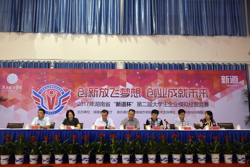 (本网讯)9月22日至24日,2017年湖南省“新道杯”第二届大学生企业模拟经营竞赛在我校体育训练馆隆重举行,大学生企业模拟经营竞赛属省级大学生学科竞赛。此次大赛由湖南省教育厅主办,米兰体育网页版承办,新道科技股份有限公司提供技术支持。来自省内35所高校的71支代表队,共355名选手参加比赛。我校荣获组织奖,管理学院派出的三支参赛队伍分别获得一等奖(1个)、二等奖(2个),成绩斐然。