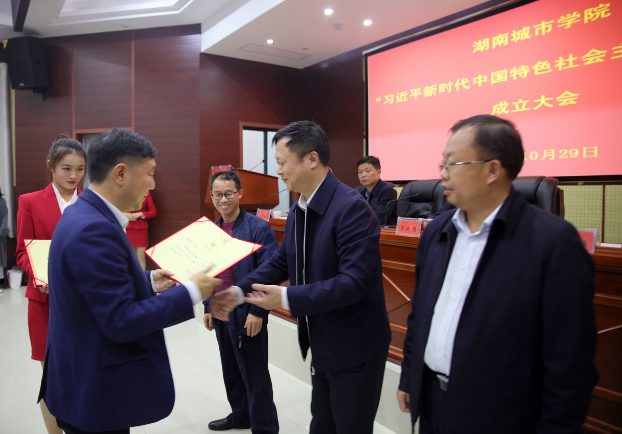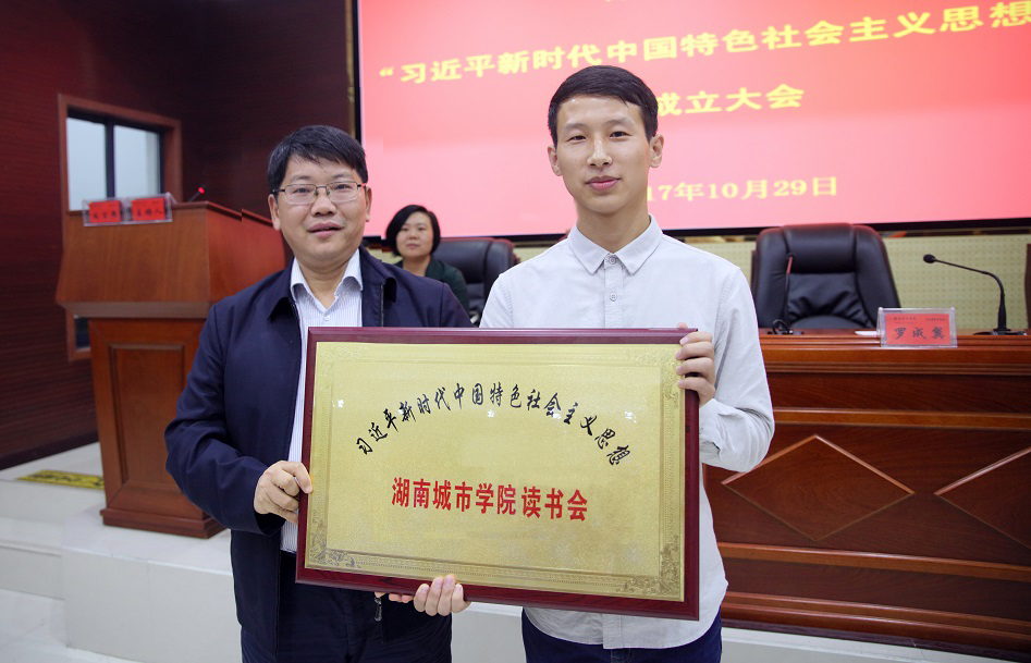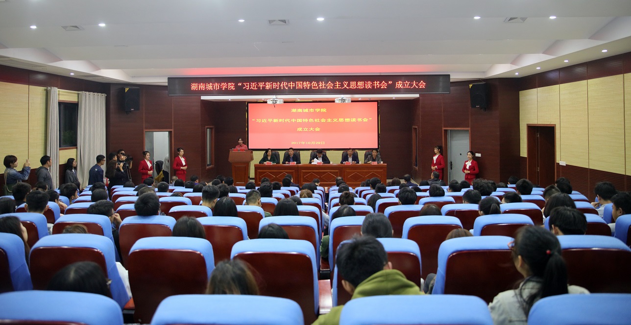 (本网讯)10月29日晚,由学生自主发起并成立的米兰体育网页版“习近平新时代中国特色社会主义思想读书会”成立大会在建筑规划楼报告厅举行。党委书记罗成翼、副校长谭献良,宣传部、学工部、团委、马克思主义学院、各二级学院学工部门负责人以及读书会首届会员出席大会。