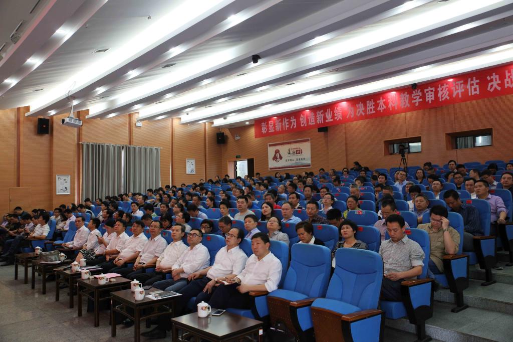 (本网讯)4月21日,我校2018年教学工作大会在图书馆报告厅隆重举行。会议全面总结了过去三年的教育教学工作,谋划2018年教育教学的主要任务,全面助推本科教学工作审核评估。会议由党委书记罗成翼主持,全体校领导,中层干部、督导团团长、教学科研办主任、系(室、中心)主任、教务秘书,教务处、质控中心全体成员,二级学院教师、辅导员、学生代表共252人参加会议。