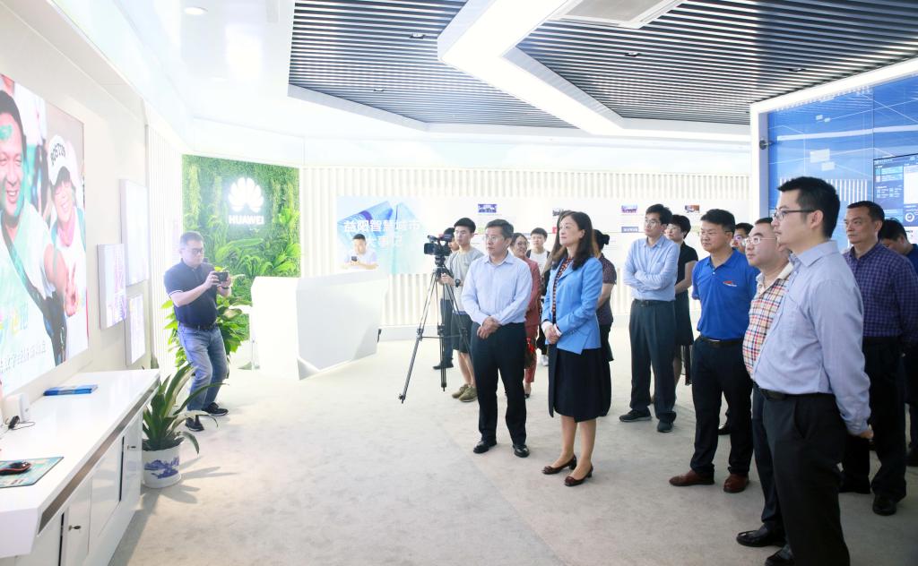 陈晓红一行考察了湖南新型智慧城市研究院,听取了该院负责人对我校参与智慧城市建设情况以及智慧益阳已上线的八大业务模块的情况介绍。我校领导同时简要介绍了学校的办学情况,陈晓红对我校积极参与地方智慧城市建设、积极开展智慧城市相关领域的科学研究表示充分肯定,尤其对我校与华为技术有限公司联合编写智慧城市有关教材并在学校开课的举措表示赞许,认为值得大力借鉴与推广。