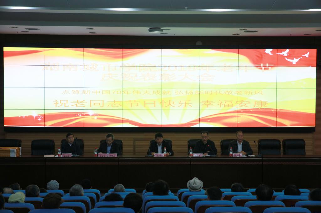 本网讯2019年10月16日上午,我校2019年重阳节庆祝大会在学校图书馆报告厅召开。学校党委书记罗成翼、校长李建奇出席会议并讲话,200多位离退休老同志参加大会,大家欢聚一堂,共庆佳节。庆祝大会由副校长夏宏宇主持。