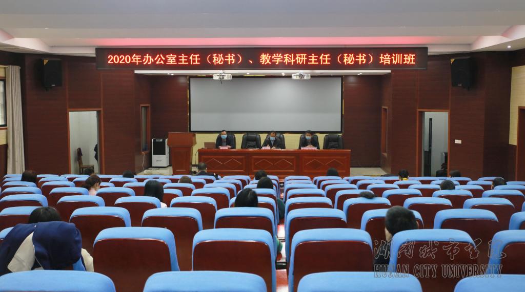 本网讯  2020年3月21日至22日,我校人事处在建规楼学术报告厅举办办公室主任(秘书)、教学科研办主任(秘书)培训班。校长李建奇出席开班仪式并讲话,党委副书记汤放华主持开班仪式。