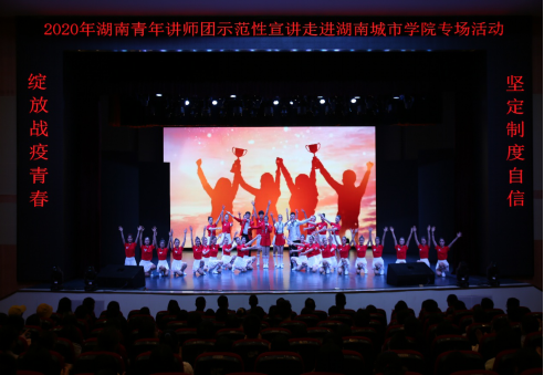 活动以我校大学生艺术团的《新时代 新城院》原创快板书表演开场。湖南省青年讲师团的陈科文、王皓、董青、张乐蒙、朱威宏五位讲师走进米兰体育网页版,从自身的工作实际和典型事迹出发,向同学们分享了他们的抗“疫”故事,还原了抗“疫”一线画面。