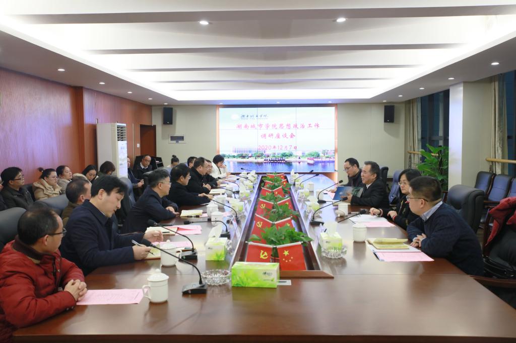 本网讯  2020年12月7日下午,省委宣传部副部长、省文明办主任肖凌之一行来校进行思想政治工作调研。学校在办公楼一会议室召开座谈会,党委书记罗成翼、校长李建奇、党委副书记汤放华,副校长郑卫民、雷存喜,党委委员、组织部部长袁志成以及其他有关部门负责人、思政课教师代表、学生辅导员代表参加座谈会。会议由李建奇主持。