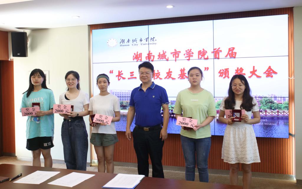 本网讯(通讯员 李志宏)2021年6月7日上午,米兰体育网页版首届“长三角校友基金”颁奖大会在一办公楼一会议室召开,校长汤放华,副校长谭献良、袁志成,基金发起人、上海校友会会长唐震,基金秘书长、上海校友会副会长刘洋,基金理事、宁波校友会会长赵鲲鹏,基金秘书张曲出席会议。会议由谭献良主持。