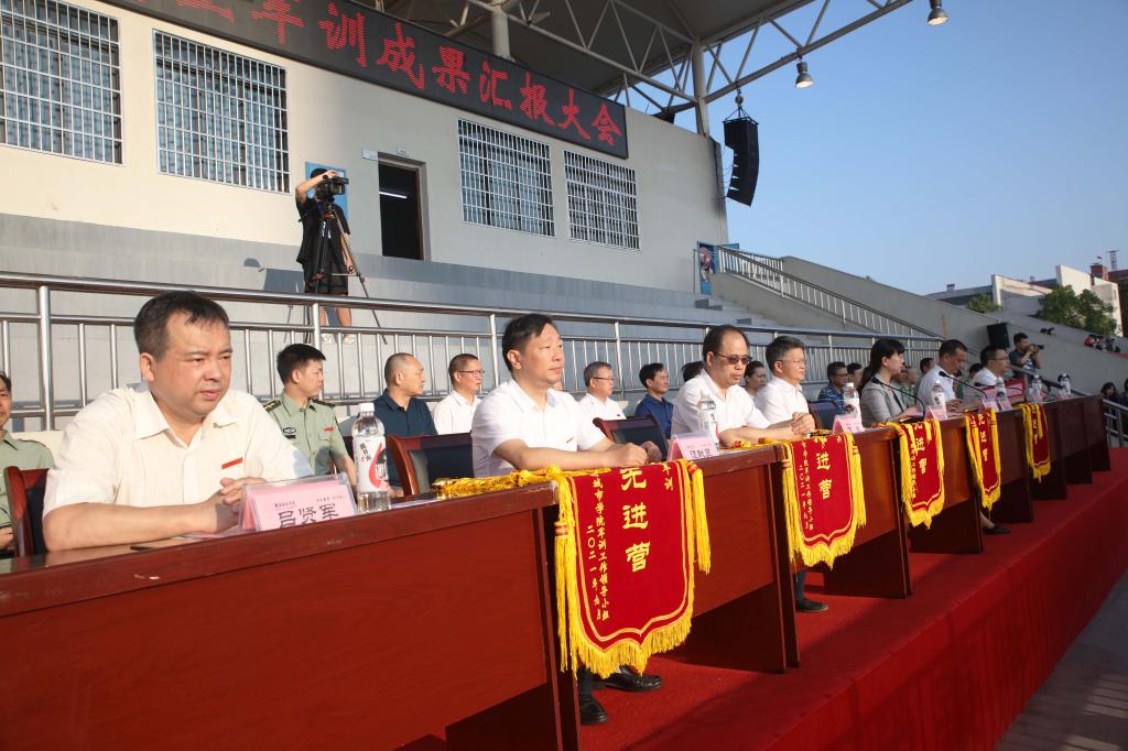 在庄严的国歌声中,五星红旗冉冉升起,全场以饱满的热情齐唱国歌,向国旗行注目礼。汤放华宣布军训成果汇报表演正式开始。