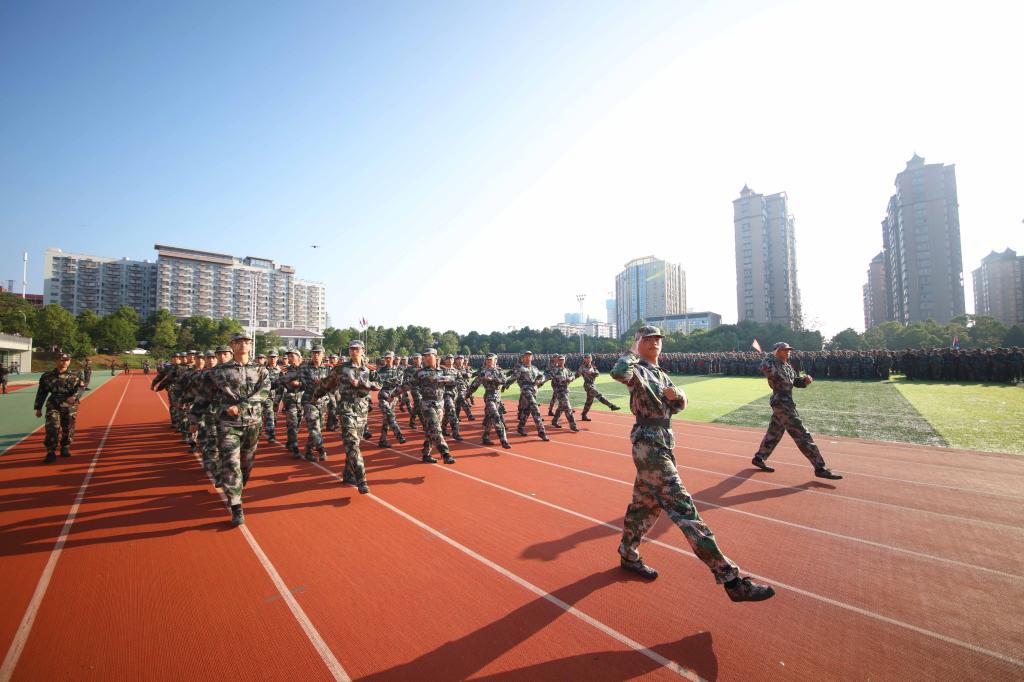 袁志成作了军训总结报告。他表示,在此次军训中,各级领导高度重视、悉心指导,辅导员和教官工作积极主动、高度负责,全体参训同学文明上进,不怕苦、不怕累,眼神更加坚毅了,纪律更加严明了,作风更加硬朗了,精气神更加足了。希望全体参训学生把在军训中形成的雷厉风行、艰苦奋斗、积极进取、团结合作的良好作风融入到今后的学习、工作和生活中,力争成为志存高远、思想过硬、专业扎实、品德高尚的合格大学生和爱党、爱国、爱人民、爱校、爱家的新时代好青年!