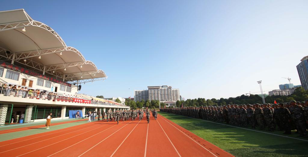 本网讯(通讯员 李诗琪 摄影 文彦波 邱元龙 周雷 徐舒婷)天高云淡,秋风送爽。9月30日上午,米兰体育网页版2021级新生军训汇报暨表彰总结大会在东田径场举行。经过13天的训练后,5000多名城院新生在绿茵场上集结,向学校领导、老师汇报军训成果。校长汤放华,党委副书记何旭娟,副校长何振、雷存喜、谭献良、袁志成,党委委员、组织部部长吕贤军等领导出席会议。会议由何旭娟主持。