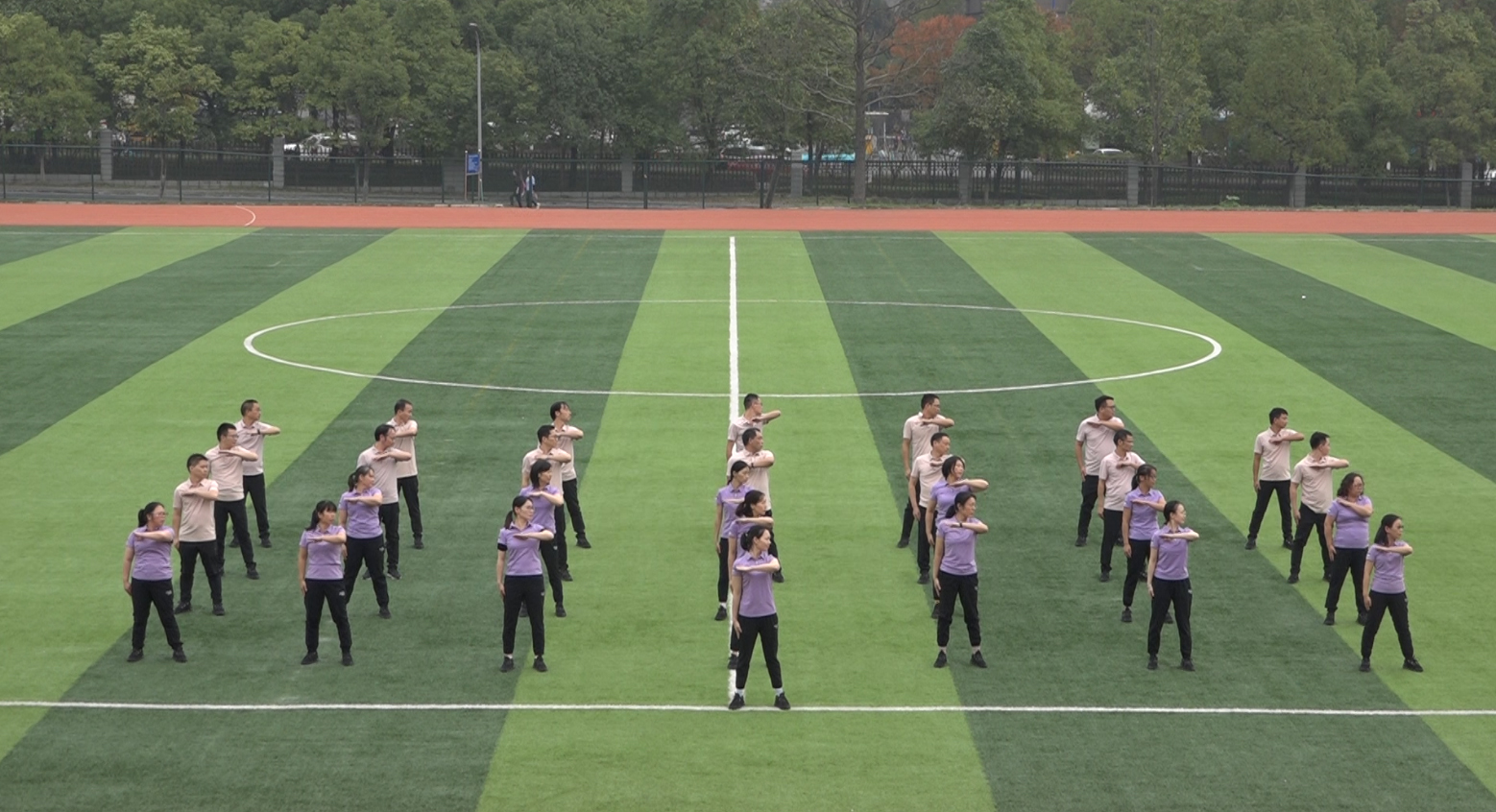 本网讯(通讯员 周敏)为推动全员健身活动的深入开展,活跃教职工业余文化生活,展示教职员工积极向上、团结协作的精神风貌。2021年10月27-29日,我校2021年“全员健身,活力城院”教职工第十套广播体操比赛在东田径场举行,全校20个分工会组成的16支代表队共六百余人参加了比赛。