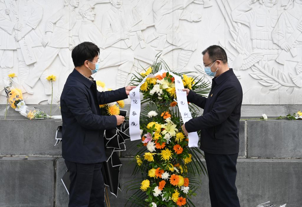 上午9:30,全体成员到达活动现场,严格遵守防疫要求,扫场所码,戴好口罩。苍松翠柏掩映着的益阳烈士纪念碑巍然耸立,大家在烈士纪念碑前整齐列队、肃立,奏唱国歌,工作人员手抬花篮缓步走向纪念碑,校党委书记李建奇和校长汤放华上前为花篮整理缎带。随后,全体人员向烈士默哀,深切表达缅怀之情。大家怀着无比崇敬的心情依次环绕瞻仰了烈士纪念碑,参观了英烈事迹墙,对革命英烈致以无尽哀思与深切怀念。