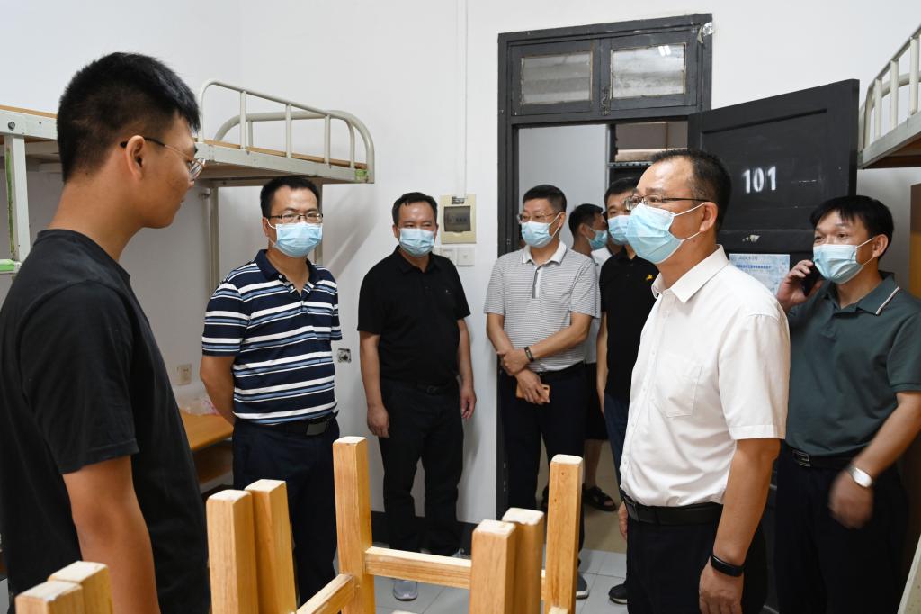 党委书记李建奇带队走访新生宿舍。